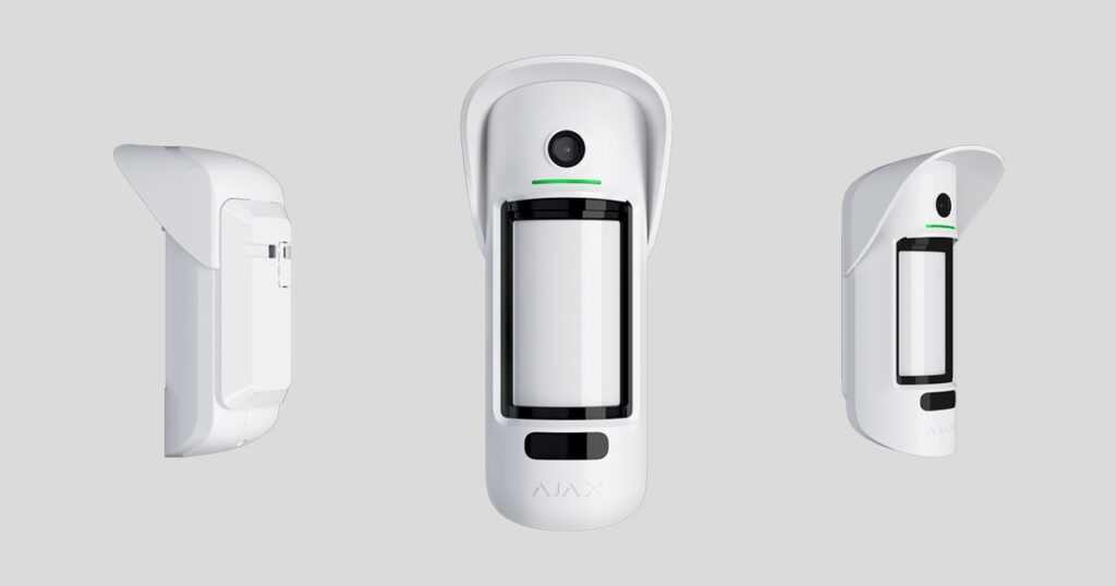MotionCam Outdoor is a wireless outdoor motion detector with a camera for alarm verification. Detects movement at a distance of up to 15 meters. It has anti-masking protection, ignores animals when correctly configured and installed.