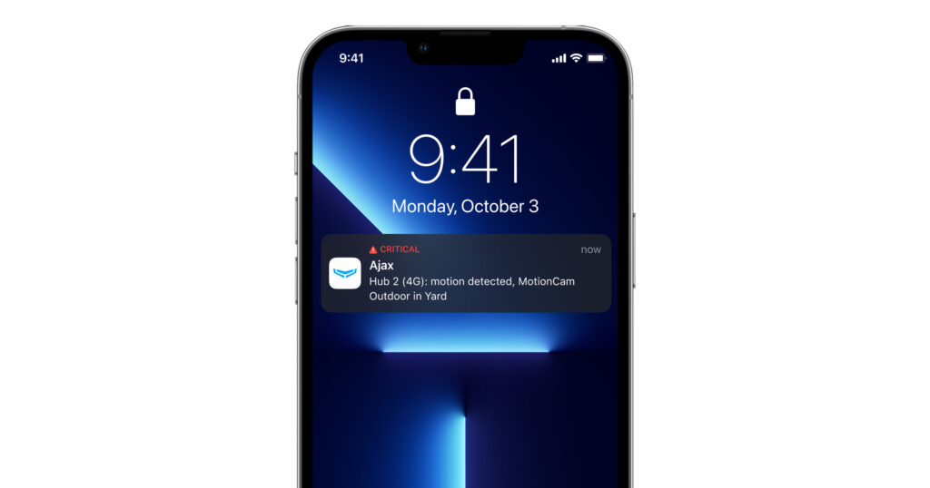 📸 When triggered, the hub activates sirens, starts scenarios, and notifies users and the security company. In case of an alarm, photos are transmitted to the monitoring station of the security company and to all users of the system who have access to the hub’s event feed. All alarms, photos, and events of MotionCam Outdoor are recorded in the event feed of the Ajax app.