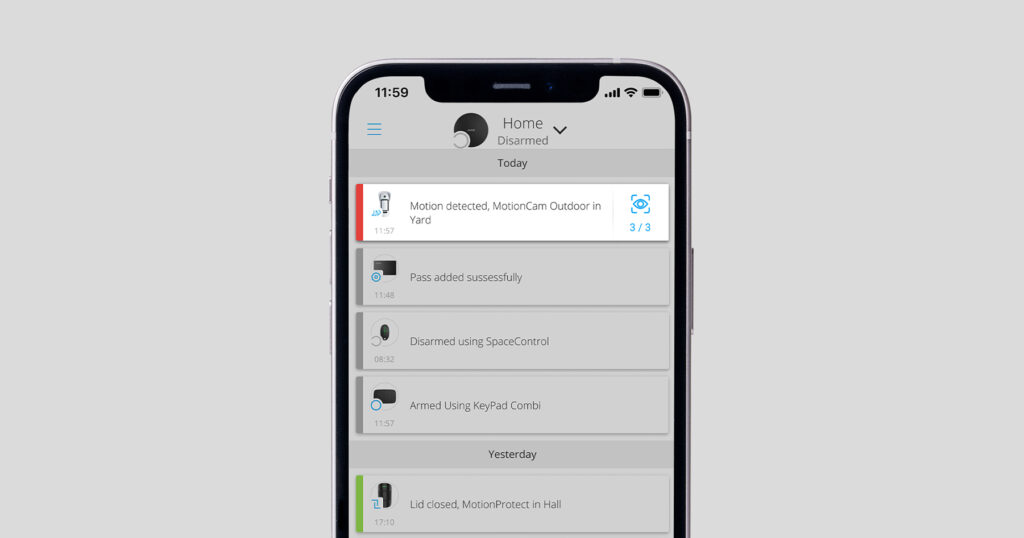 A series of photos are played back in the app as animation, which allows you to evaluate the incident in dynamics. Photos are available both in Ajax apps and in the monitoring station software of the security company.